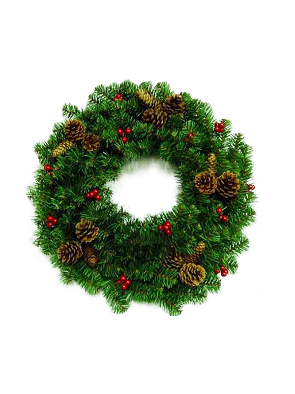 Guirlanda de Natal artificial com pinhas vermelhas